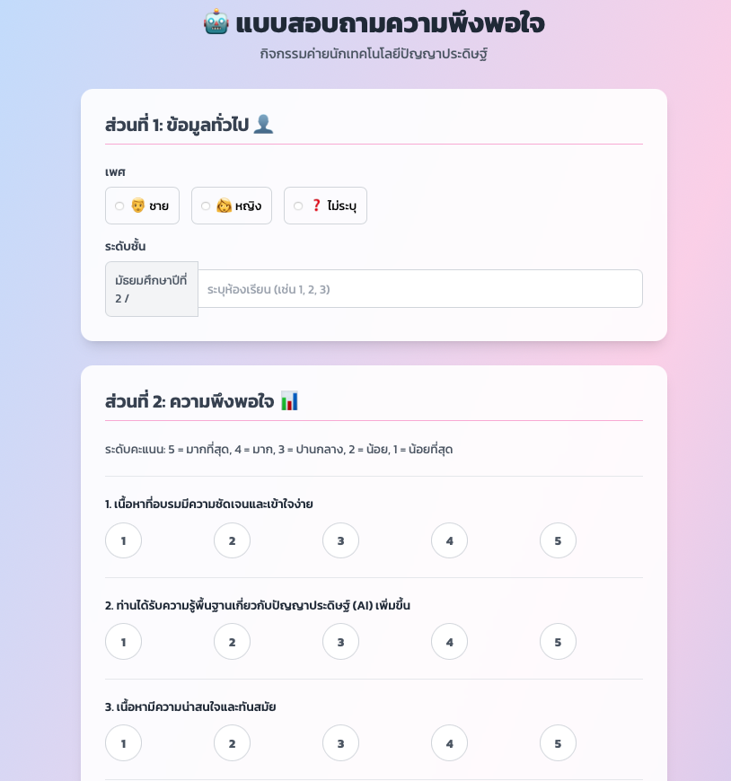 1. การ prompt ให้ ai ช่วยวิเคราะห์โครงการ/กิจกรรม และออกแบบข้อคำถามให้ตอบวัตถุประสงค์ของกิจกรรม