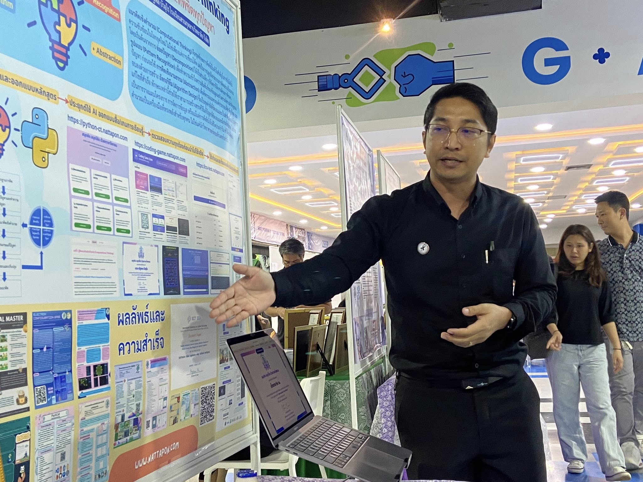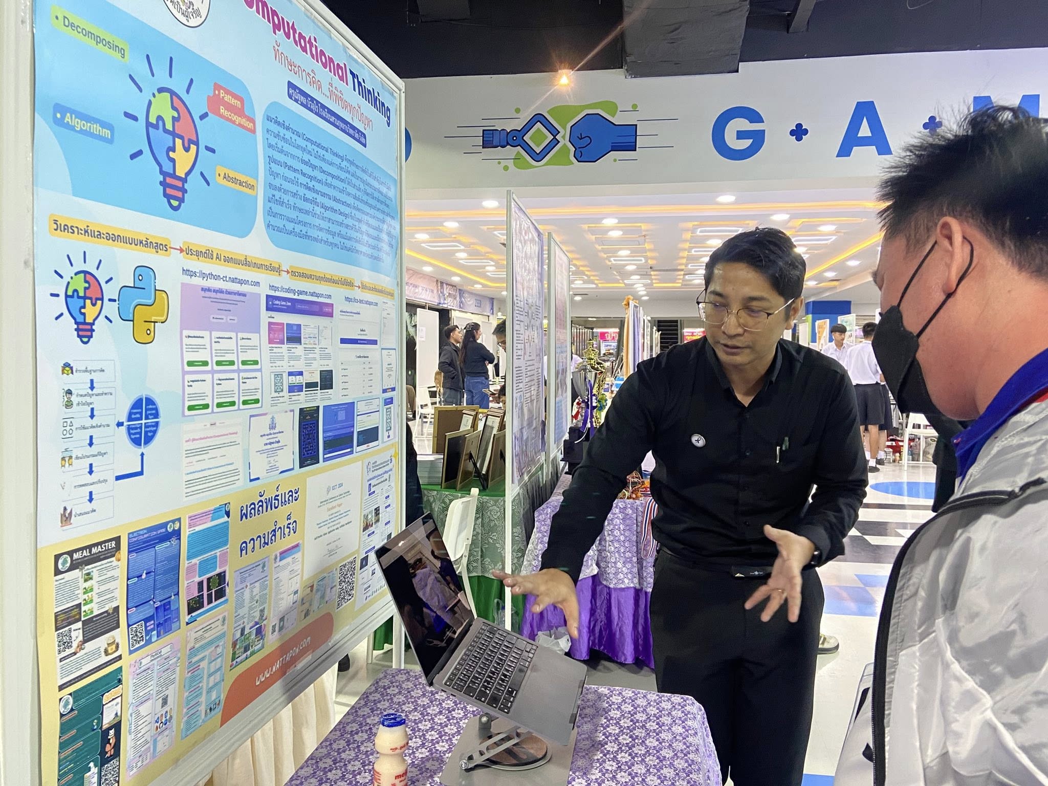 สมาชิกกลุ่มโครงงานแอปพลิเคชันฝึกโขนด้วยตนเอง ซึ่งผ่านเข้ารอบในการประกวด NSC2024 และได้ตีพิมพ์ในวารสารต่างประเทศ และนำเสนอผลงานใน Conference ICCT2024 นำเสนอผลงานให้นักเรียนที่สนใจในสาขาด้านเทคโนโลยี ได้นำไปเป็นแนวคิดและแรงบันดาลใจในการพัฒนาโครงงานและพัฒนาตนเองให้ประสบความสำเร็จ