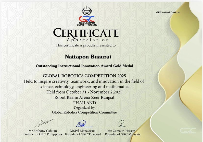 ขอบคุณคณะผู้บริหาร เพื่อนครู และนักเรียนโรงเรียนสวนกุหลาบวิทยาลัย รังสิต ที่เป็นแรงผลักดันและเป็นส่วนสำคัญที่ทำให้ผมได้รับรางวัลนี้ครับ https://drive.google.com/file/d/1RGSFd1QgKIHEUQZxGOYckiOoW68Ut1S5/view?usp=sharing