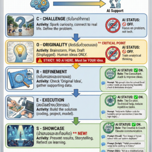 ยุคที่การมาของ AI ส่งผลต่อการจัดการศึกษา ครูจึงมีบทบาทสำคัญอย่างมากครับที่จะต้องปรับกลยุทธ์การสอน ทั้งการสอนที่ส่งเสริมให้นักเรียนได้เรียนรู้ คิดเอง ทำเอง เกิดทักษะด้วยตนเอง โดยไม่ใช่การใช้ AI ช่วยทำงาน แต่ในอีกทางหนึ่ง ก็ต้องส่งเสริมให้นักเรียนได้ใช้ AI อย่างเกิดประโยชน์ต่อการเรียนรู้อย่างมีจริยธรรมด้วย วันนี้ผมจึงมีทางเลือกหรือรูปแบบการสอนหนึ่งมานำเสนอครับ เป็นการผสมผสานกันระหว่างรูปแบบการสอนที่มีมาอย่างนมนาน ร่วมกับการนำ AI เข้าไปใช้อย่างกลมกลื่น วิธีการสอนนี้ผมตั้งชื่อว่า “THE CORES MODEL” คอนเซปต์ของโมเดล คือ “มนุษย์คิดนำ…